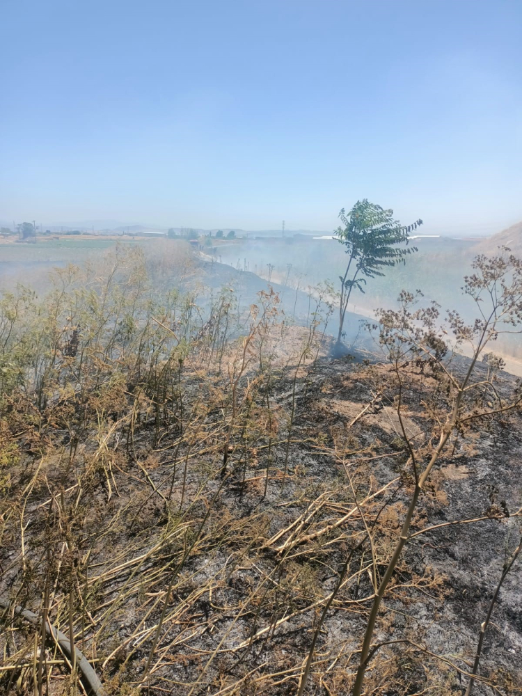 Karesi ilçesine bağlı Üçpınar mahallesinde hasat yapıldıktan sonra tarlalarda kalan anızlar nedeni bilinmeyen bir nedenle ateş aldı.