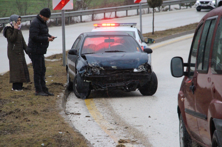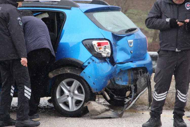 Bolu'da bariyerlere çarpan bir otomobile yardım etmek için yol kenarında duran cipe, arkadan gelen araç çarptı.