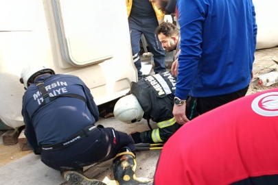 Mersin'in Erdemli ilçesinde devrilen beton mikserinin altında kalarak sıkışın sürücü, itfaiye ekiplerince yaralı kurtarıldı.