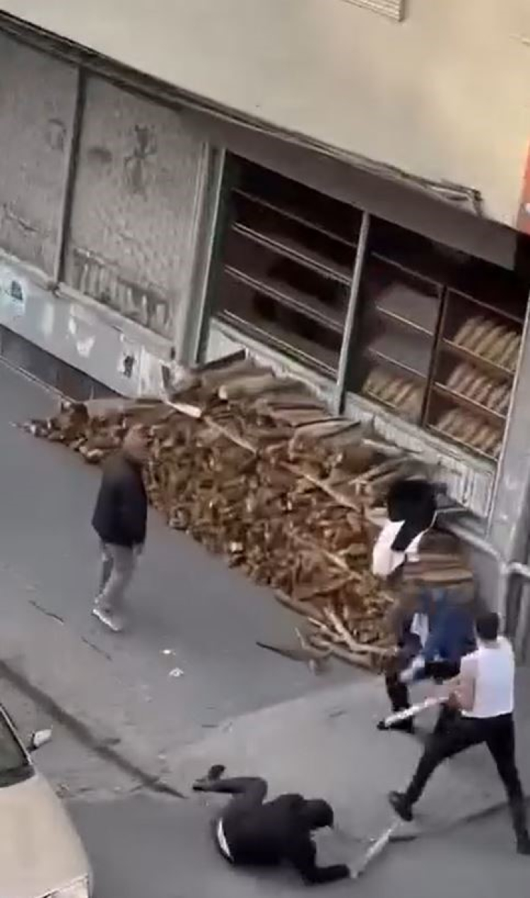 Caddede bulunan fırının önünde dizili duran odunları alan taraflar birbirlerine saldırmaya başladı. Kafasına odun ile vurulan bir kişi bayıldı. Adamın bayılmasına aldırış etmeyen gözü dönmüş şahıs odunla kafasına vurmaya devam etti. Taraflardan biri de eline aldığı bıçakla saldırdı. Bir kişi de bıçaklanırken, olayda toplam 5 kişi yaralandı. Yaşanan o anlar cep telefonu kamerasıyla görüntülendi.