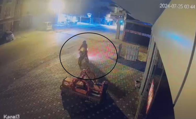 Hatay'ın Erzin ilçesinde BİM şubesine motosikletle gelerek boyalı saldırıda bulunan şahsın o anları güvenlik kamerasına yansıdı.