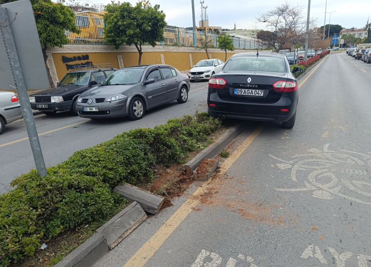 Bir otomobil refüje çıktı diğeri park halindeki araca çarptı