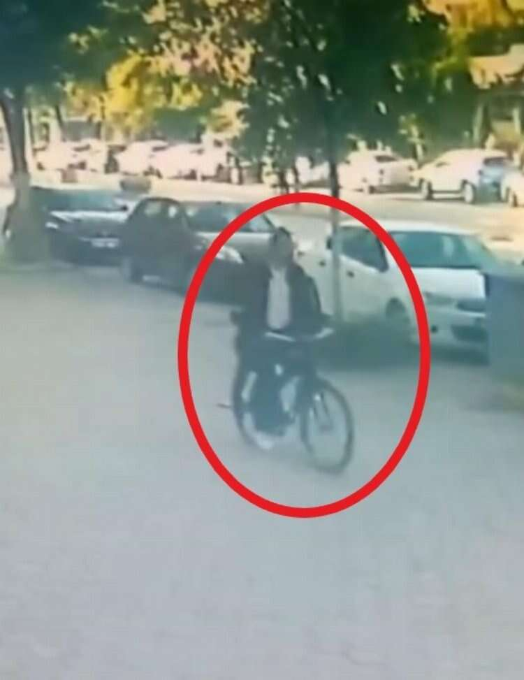 Bisikletini yerinde bulamayan sahibi, güvenlik kameraları inceleyince çalındığını gördü.