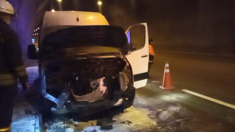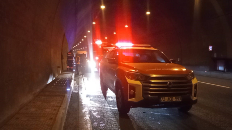 Bolu Dağı Tüneli'nde seyir halinde olan minibüsün motorundan yangın çıktı.