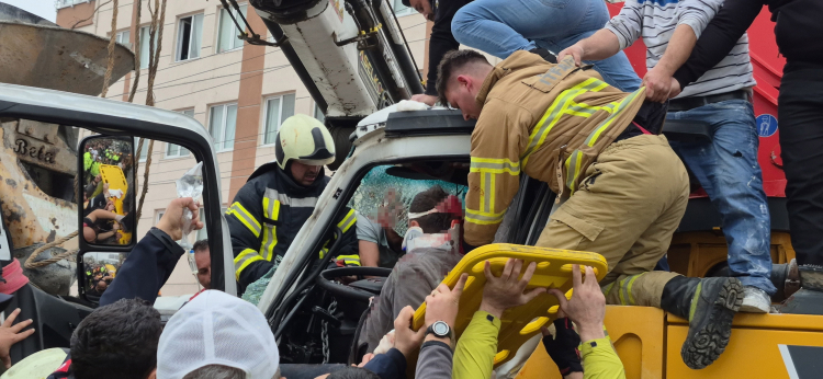 İki araç arasında sıkışan sürücüsü Erdal Ş.'yi kurtarmak için çalışma başlatıldı. Yaralı sürücü itfaiye, polis ve vatandaşların yardımı, vinç ve iş makinelerinin desteği ile yürütülen ve yaklaşık 1 saat süren çalışma sonucu kurtarıldı. Sürücünün sıkışan ayağını kurtarmak için adeta zamanla yarışan ekipler, büyük uğraş verdi.