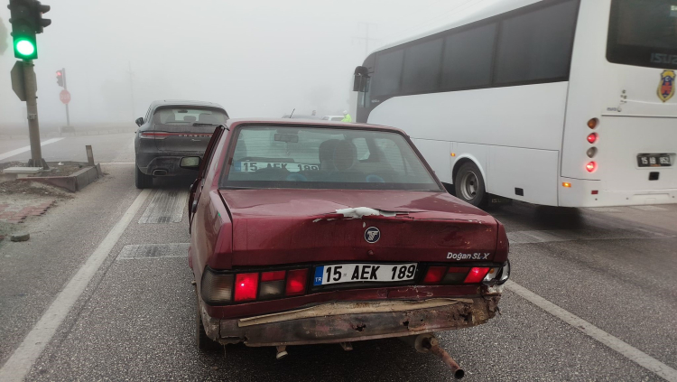 Burdur'da yoğun sisten dolayı 4 aracın karıştığı zincirleme trafik kazasında 1'i ağır olmak üzere 2 kişi yaralandı.