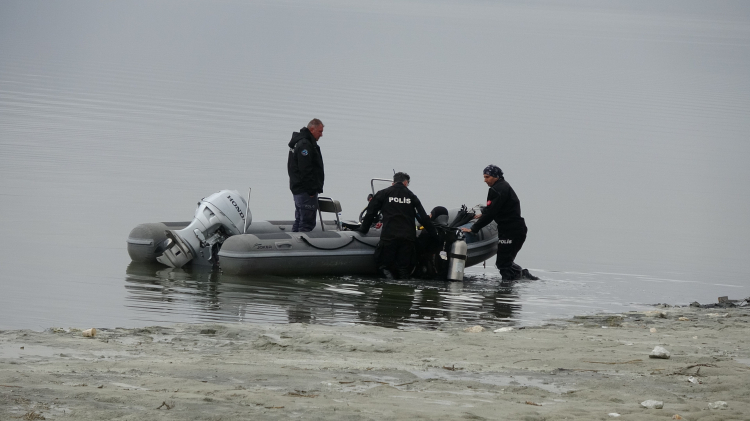 Antalya, Konya ve İzmir’den sevk edilen dalgıç polisler gölde arama çalışmalarına başladı.