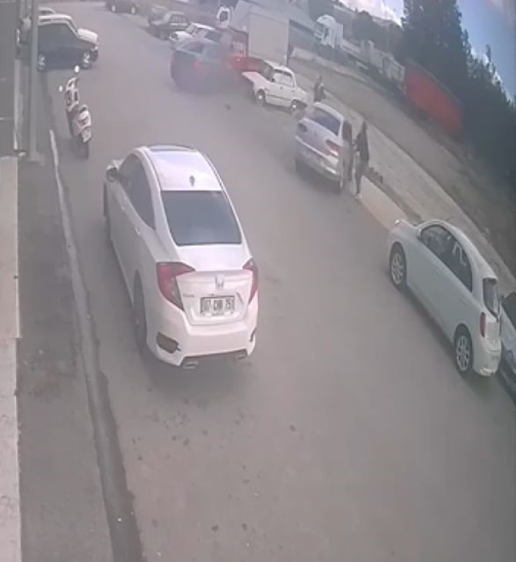 Kaza anı ise çevrede bulunan bir iş yerinin güvenlik kamerasına yansıdı. Görüntülerde otomobilin süratle gelişi ve park halindeki araçlara çarpması yer alıyor.