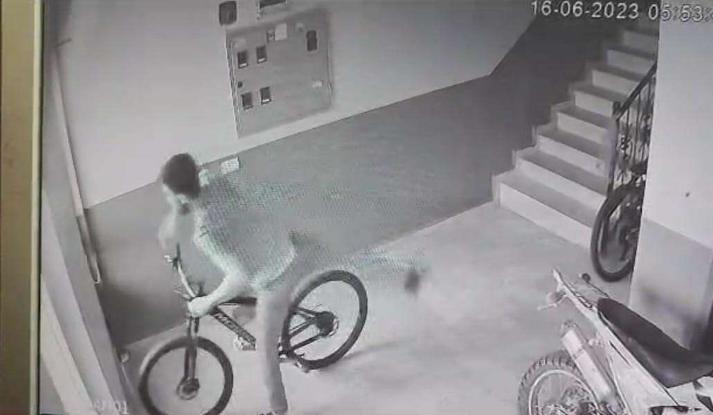 Apartmana giren şüpheli, apartman içine bırakılan bisiklete yöneldi. Bisikleti gözüne kestiren hırsız rahat tavırları ile bisikleti çalarak kayıplara karıştı.