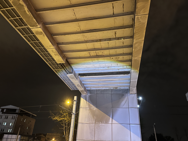 Bursa'da seyir halindeki araçların bulunduğu yola, üst geçitten kopan bağlantı demiri düştü. Olayda büyük bir facia kıl payı atlatılırken, bir aracın iki lastiği parçalandı.