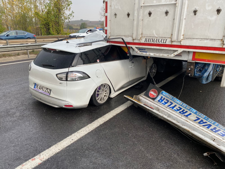 Bursa'nın İnegöl ilçesinde meydana gelen kazada otomobil tırın altına girdi, 1'i ağır 3 kişi yaralandı.