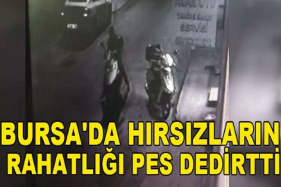 Bursa'da yaşanan iki ayrı hırsızlık olayında hırsızların rahatlığı kameralara yansıdı. Dükkanın önündeki motor kendilerininmiş gibi hareket eden 2 kişi ve çalacakları malzemeleri almaya taksi ile gelen hırsızlar bu kadarına da pes dedirtti.