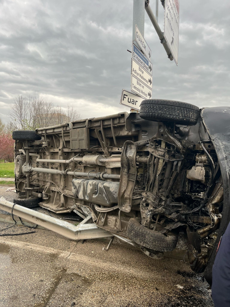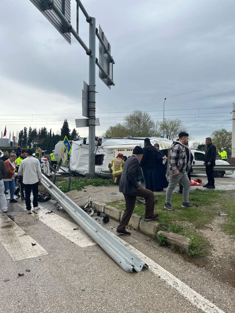 Olay, öğle saatlerinde, İstanbul Yolu üzerindeki Osmangazi ilçesi yakınlarında gerçekleşti. Yağışlı havanın etkisiyle kayganlaşan yolda sürücüsünün kontrolünü kaybettiği servis aracı, bariyerlere çarparak durabildi.