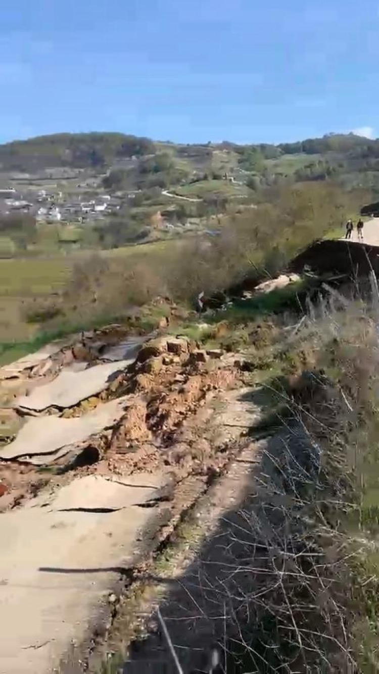 Bölgede etkili olan yağışların ardından meydana gelen heyelanda yol parçalara ayrılarak hasar gördü. Yaklaşık 150 metre uzunluğundaki heyelan alanını gören vatandaşlar şoke oldular.