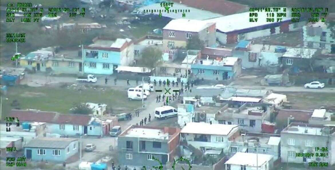Bursa İl Emniyet Müdürü Dr. Sabit Akın Zaimoğlu'nun "Bursa'yı bu embesillerden, bu sülüklerden temizlemeden durmak yok" dediği operasyonun helikopter görüntüleri paylaşıldı.