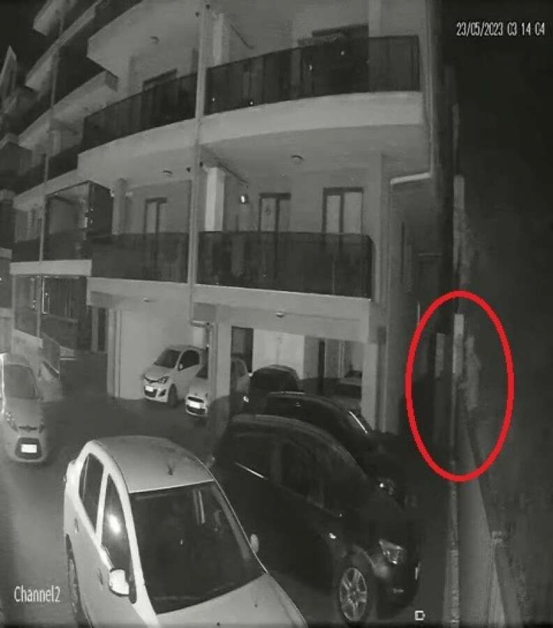 Kameralara aldırış etmeyen soğukkanlı hırsız,sitenin duvarından atlayarak binanın içine girdi.