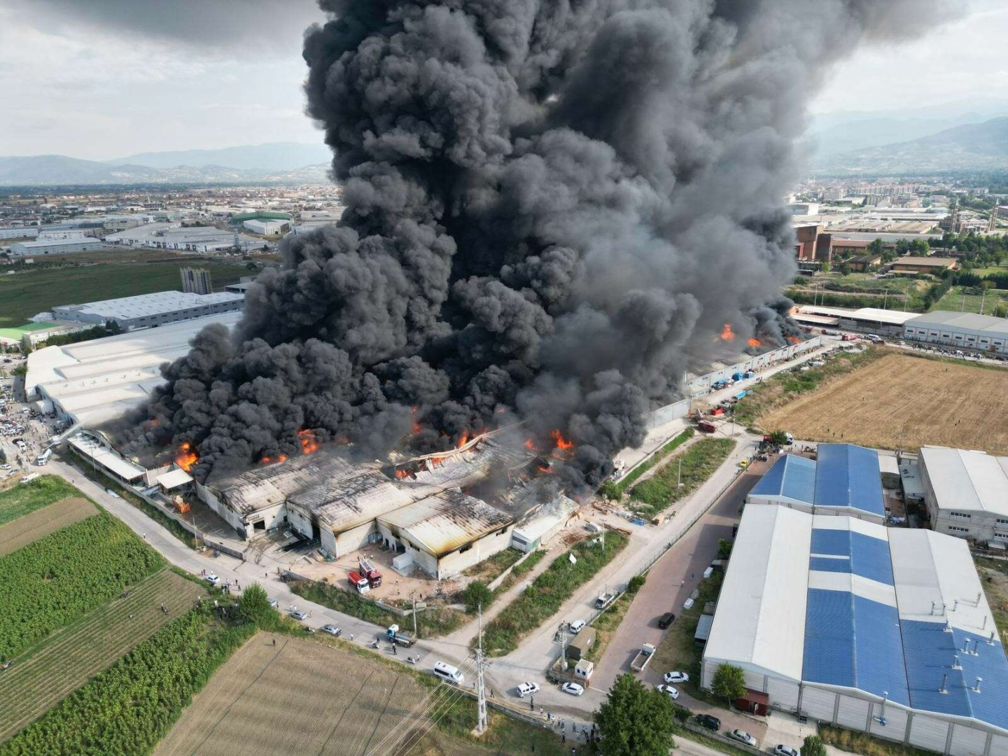 Yangın cam, mobilya ve metal fabrikalarına da sıçradı, alevler kısa sürede büyüdü.