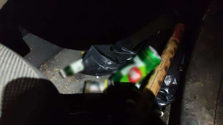 Polis ekipleri araç içinde inceleme yaptı. Araç içindeki çok sayıda alkol şişesi dikkat çekti.