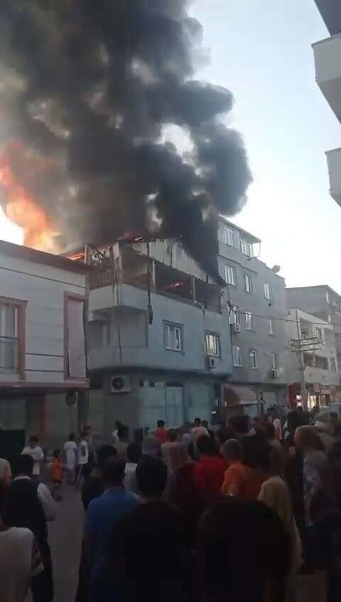 Yangın, saat 18.00 sıralarında Güneştepe Mahallesi Muhtarı Savcı Akgün'e ait 3 katlı binanın çatı katında başladı.