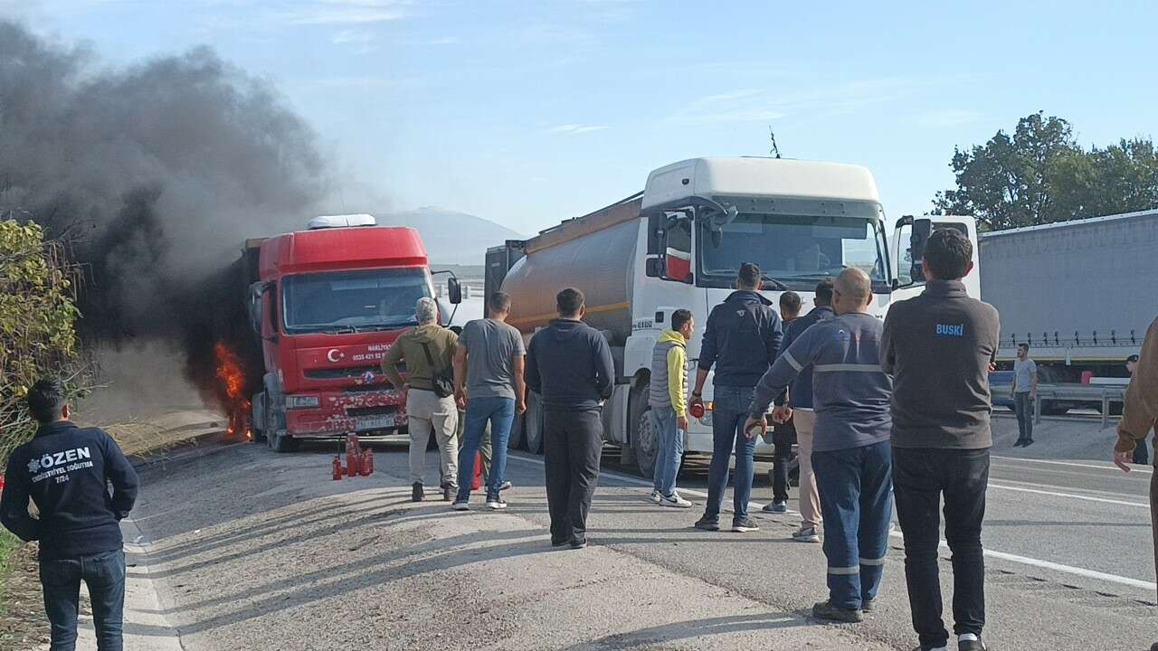Yangını gören herkes aracından yangın tüpünü kapıp müdahale etmeye çalıştı. Tüplerin yarısından fazlasının boş çıkması herkesi şok ederken, kamyonun lastiklerinde başlayan yangın kısa sürede 400 litrelik benzin deposuna ulaşınca paniğe sebep oldu. Yangını söndürmeye yoldan geçen bir su tankerinin müdahalesi de yeterli olmadı. İtfaiye ekipleri benzin deposu patlamadan alevleri söndürmeyi başardı.