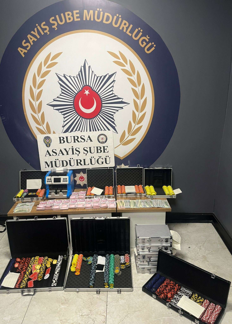 Kumar oynatıldığı bilgisi alan Bursa Asayiş Şube Müdürlüğüne bağlı ekipler, Cumhuriyet Başsavcılığı kararıyla kumar oynatılan mekana operasyon düzenledi.