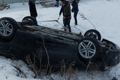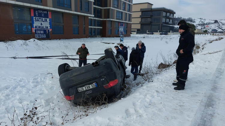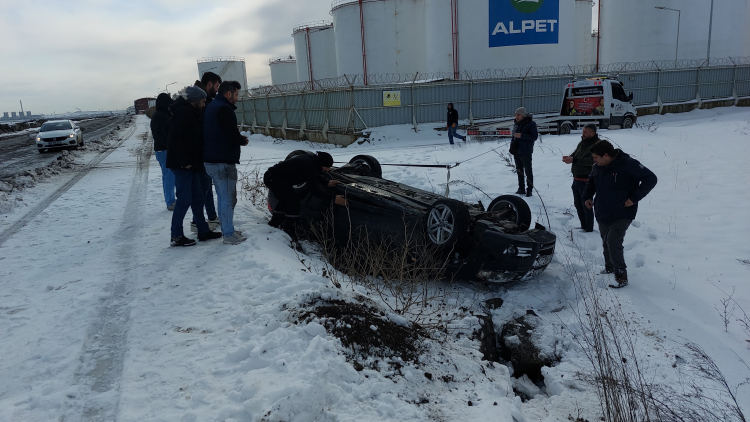 Samsun'da buzdan kayan otomobil yoldan çıkarak ters döndü.