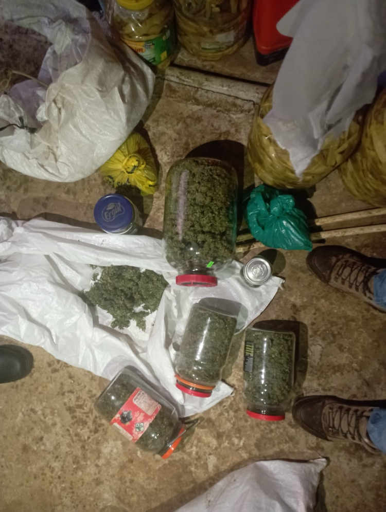 Yapılan arama neticesinde cam kavanozlar içinde 7 kilo 142 gram kubar esrar maddesi ele geçirildi. Cam kavanozların bazılarını şahsın buzdolabında sakladığı gözlenirken, V.K. olayla ilgili gözaltına alındı.