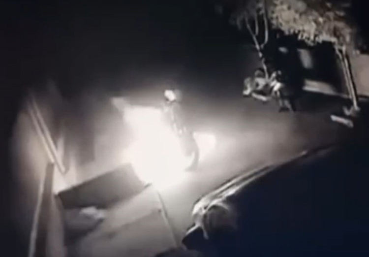 Güvenlik kamerasına yansıyan kundaklama olayında ise apartman önünde park halinde olan motosikletin yanına gelen bir kişi motosikletin üzerine yanıcı bir madde döktükten sonra ateşleyip olay yerinden kaçtığı görülüyor. Sonrasında ise motosiklet alev topuna dönüyor.