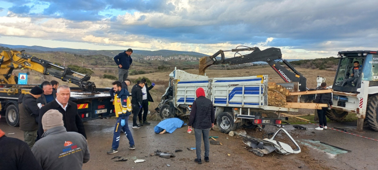 Kaza, saat 10.30 sıralarında Ezine ilçesi çıkışındaki Üsküfçü kavşağında meydana geldi. Hasan Evin idaresindeki 17 ADZ 869 plakalı kamyonet, Tuncay Bilgin yönetimindeki 17 ADJ 283 plakalı kamyonet ile çarpıştı. Kazayı gören diğer sürücüler durumu polis ve sağlık ekiplerine bildirdi. Kazada 17 ADJ 283 plakalı kamyonet sürücüsü Tuncay Bilgin olay yerinde hayatını kaybetti. 17 ADZ 869 plakalı kamyonet sürücüsü Hasan Evin ise yaralandı. Sağlık ekiplerinin olay yerindeki müdahalesinin ardından yaralı Hasan Evin ambulansla Ezine Devlet Hastanesinde tedavi altına alındı. Yaralının hayati tehlikesinin bulunmadığı öğrenildi.