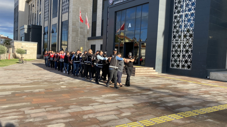 Çanakkale İl Emniyet Müdürlüğü Anafartalar Polis Merkezi Amirliği önünde 6 kişinin yaralandığı silahlı çatışma sonrası gözaltına alınan 21 şüpheliden 14'ü emniyetteki işlemlerinin ardından adliyeye sevk edildi.
