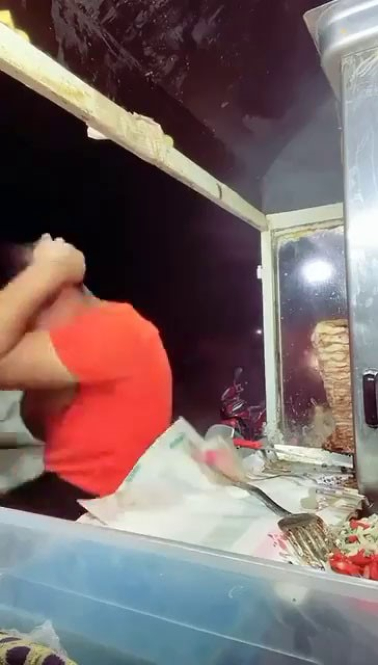Dönerci, vücuduna isabet eden kurşunlarla yere yığıldı. Yaşanan anlar, cep telefonu kamerasına yansırken, kadın müşterinin sakinliği ise şaşırttı.