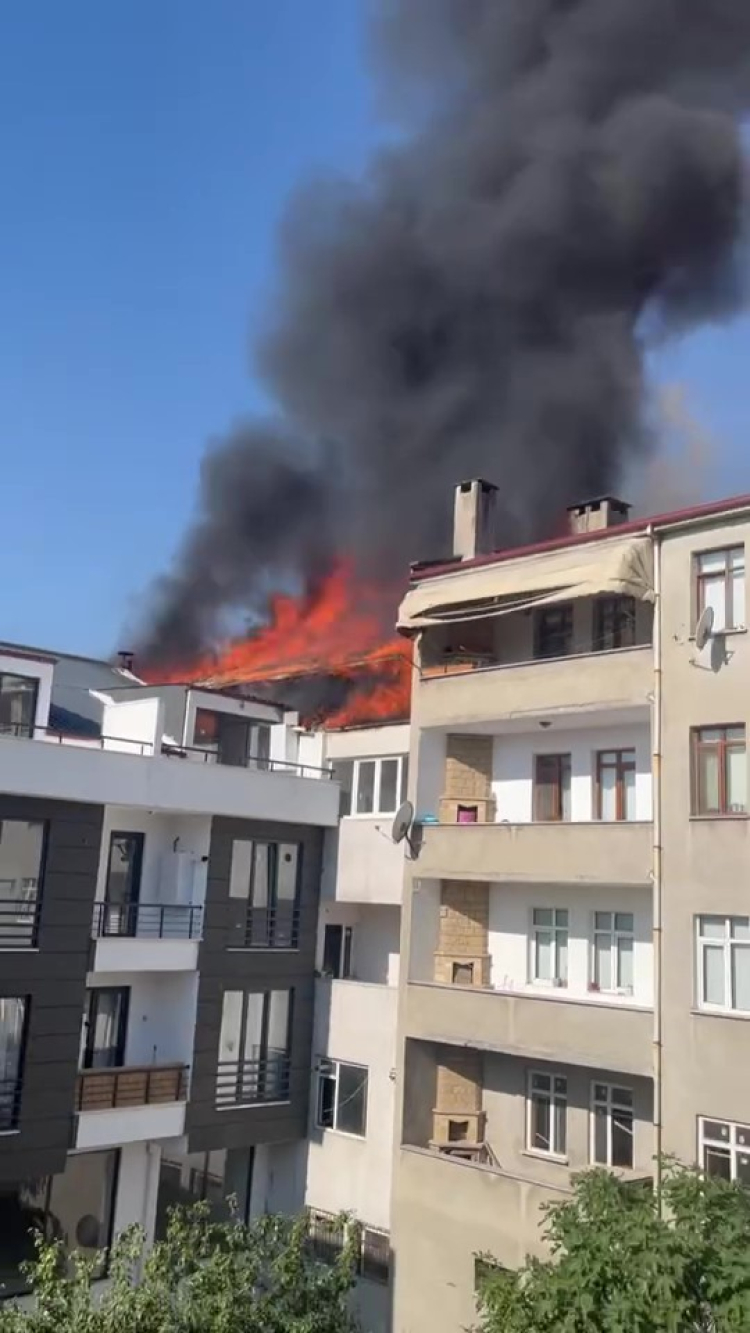 Alev alev yanan çatı katı, itfaiye ekipleri tarafından kurtarıldı.