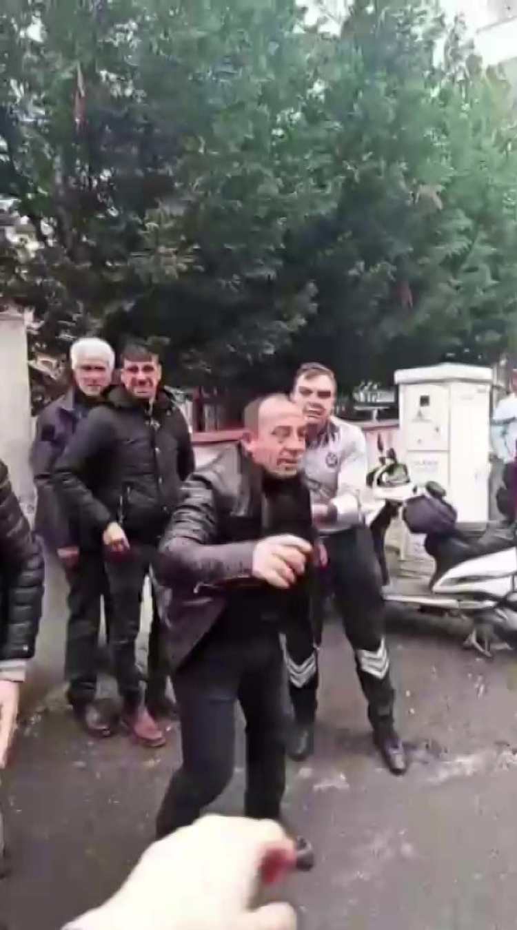 Tartışmanın büyümesiyle taraflar arasında çıkan kavgada tekmeler ve yumruklar havada uçuştu. O anlar cep telefonu kamerasına yansıdı.