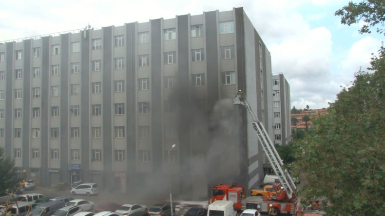 İstanbul'un Başakşehir ilçesinde 7 katlı bir iş merkezinin 4'üncü katında bulunan bir çorap imalathanesinde yangın çıktı.