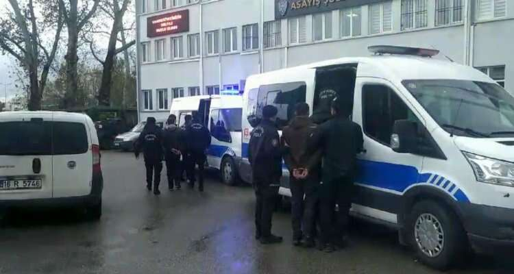 Asayiş Şube Müdürlüğü'nde işlemleri tamamlanan şüphelilerden Berzan E, Gökhan E, İshak K. ve Mertcan Ç. çıkarıldığı mahkemece tutuklandı.