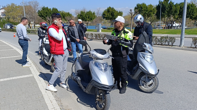 Antalya’nın Manavgat ilçesinde İlçe Emniyet Müdürlüğü Trafik Denetleme Büro ve Ekipler Amirliği tarafından Hisar Caddesinde gerçekleştirilen motosiklet uygulamasında eksiği bulunan motosiklet sürücülerine idari para cezası uygulanırken, çok sayıda motosiklet trafikten men edildi. Ekipler tarafından durdurulan ve başında kask olmadığı gözlenen motosiklet sürücüsünün yapılan sorgulamasında 5. Kez üst üste kasksız yakalandığı belirlenirken, 100 ceza puanını aştığı için sürücü belgesine 2 aylığına geçici olarak el konuldu. Sürücüye kasksız araç kullanmaktan 993 TL ceza uygulandı.