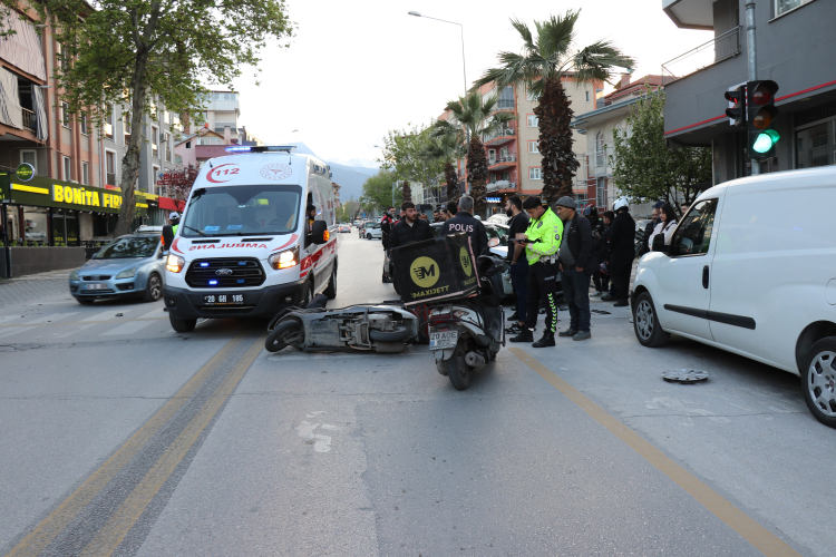 Denizli'de ara sokaktan ana yola aniden çıkmak isteyen otomobil, seyir halindeki otomobile çarptı.