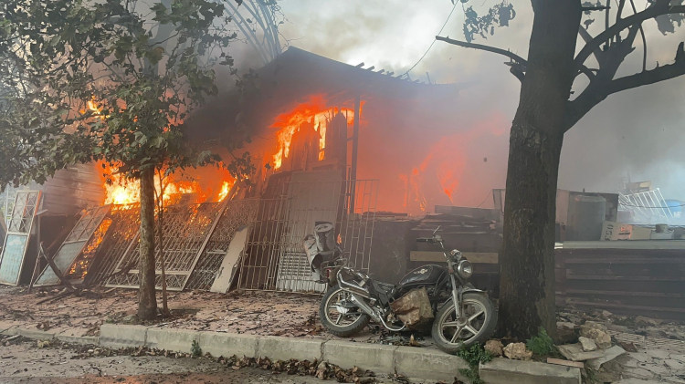 Hatay'da alevlerin yükseldiği yangında depremzede ailenin işyeri ve asrın felaketi sonrası yaşamlarını sürdürdükleri konteynerleri yandı.