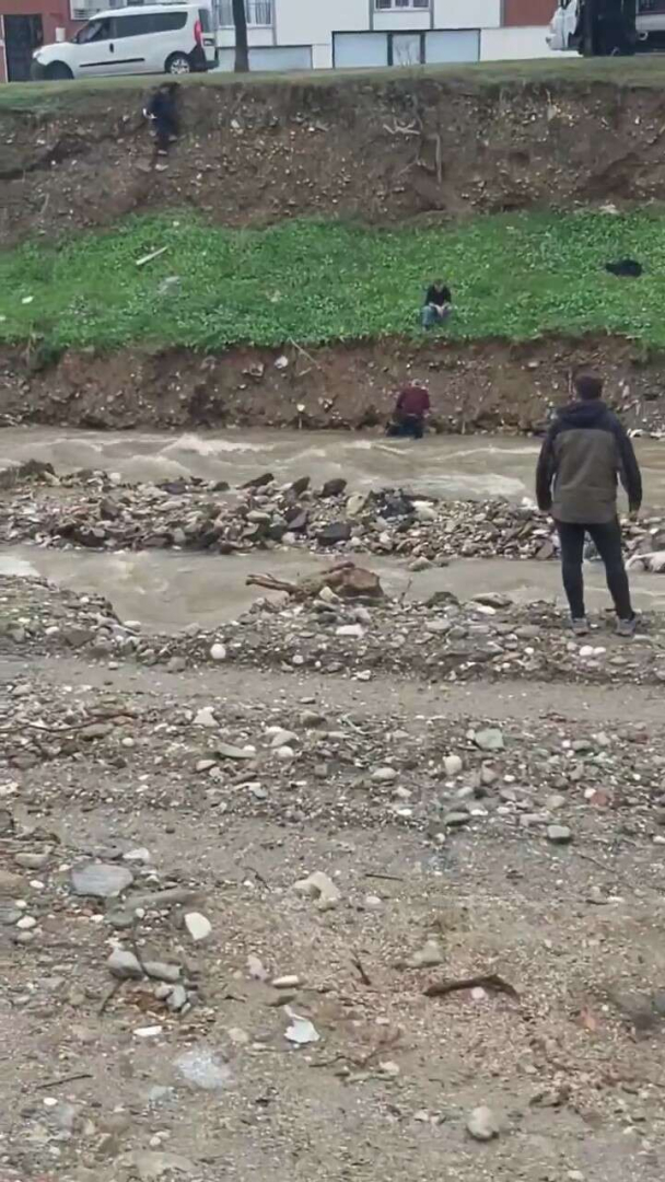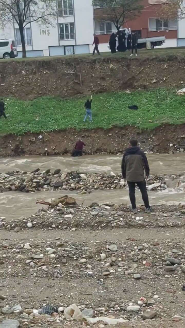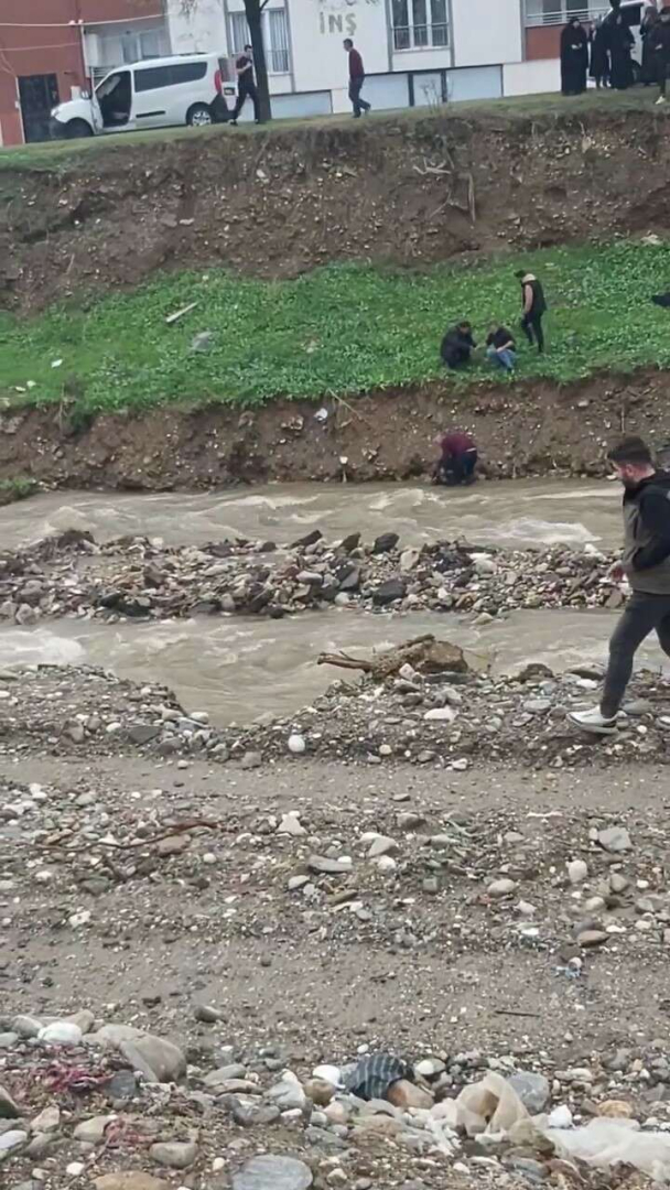 Dere kenarında yürürken sürüklenen çocuğu görüp dereye giren vatandaş, uzun süren mücadelenin ardından küçük çocuğu kıyıya çekebildi.
