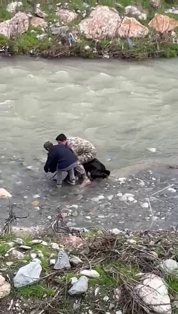 Siirt'in Baykan ilçesinde dere yatağına düşen bir buzağı, polis ekiplerinin hızlı müdahalesiyle kurtarıldı.