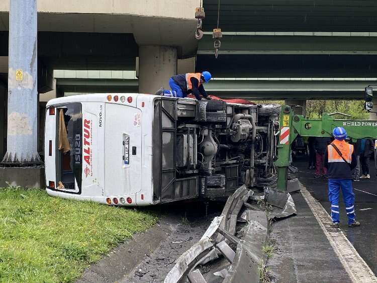 Bahçelievler'de; İstanbul Havalimanı'nda görevli polisleri taşıyan servis minibüsü, yağmurun da etkisiyle kayganlaşan yolda bariyerlere çarparak devrildi. Kazada 6 polis hafif şekilde yaralandı.