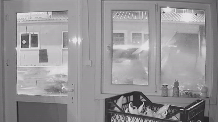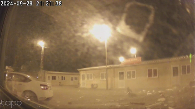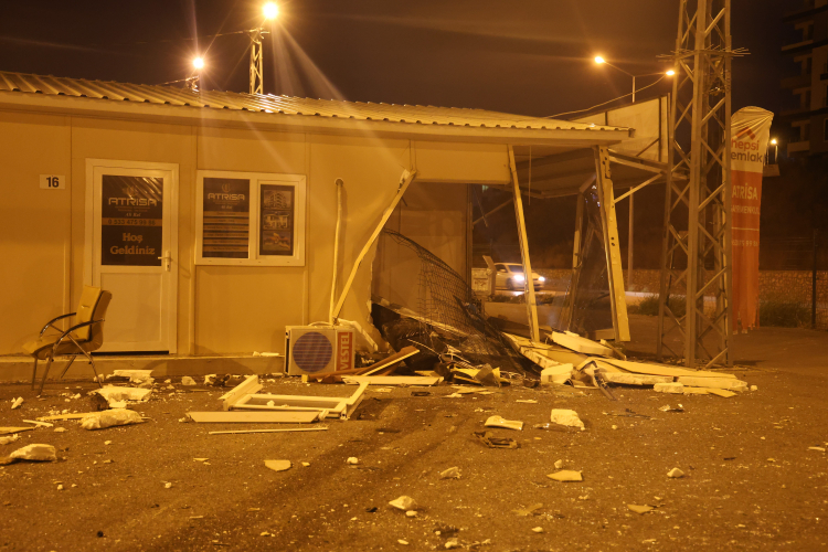 Hatay'ın Defne ilçesinde otomobilin, prefabrik iş yerinin içinden geçerek başka bir prefabrik iş yerine çarptığı anlar iş yerinin güvenlik kameralarına yansıdı.