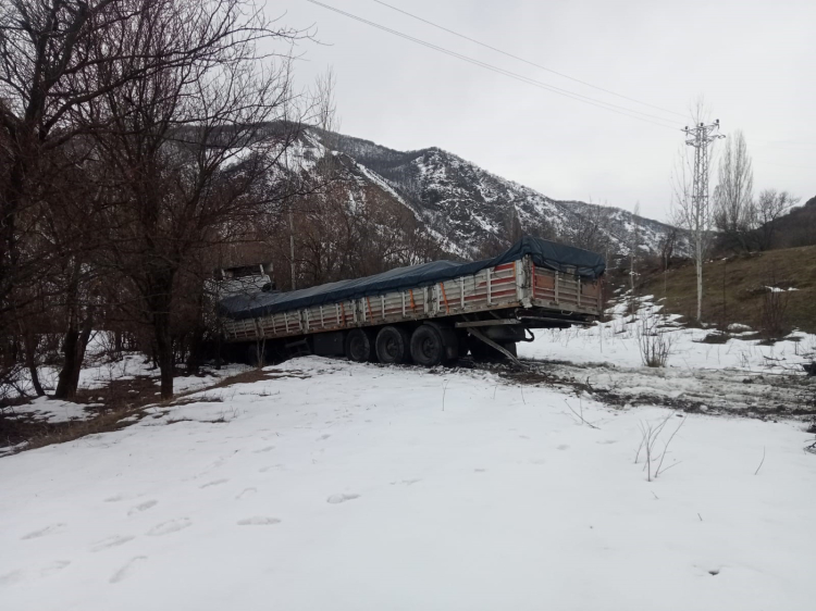 Tunceli'de şeker yüklü tır, sürücüsünün direksiyon hakimiyetini kaybetmesi sonucu şarampole yuvarlandı.