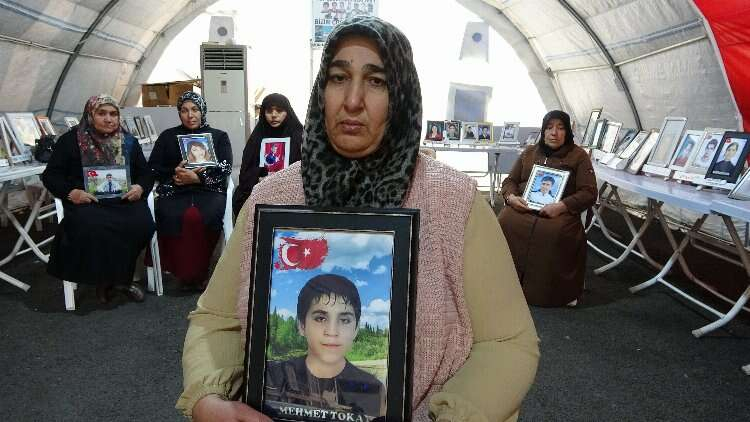 Oğlunun 8’inci sınıf öğrencisiyken kaçırıldığını söyleyen Tokay, “Benim oğlum 14 yaşında 8’inci sınıf öğrencisiydi. 2011 yılında HDP tarafında kandırılarak dağa kaçırıldı. 5 yıldır bu çadırın altında evlat mücadelemize devam ediyoruz. HDP'de vicdan olsaydı, burada 5 yıldır gözyaşı döküyoruz ama maalesef onlar bizi görmezden geliyor. Oğlum eğer beni görüp duyuyorsan o zalimlerin elinden kaç gel” dedi.