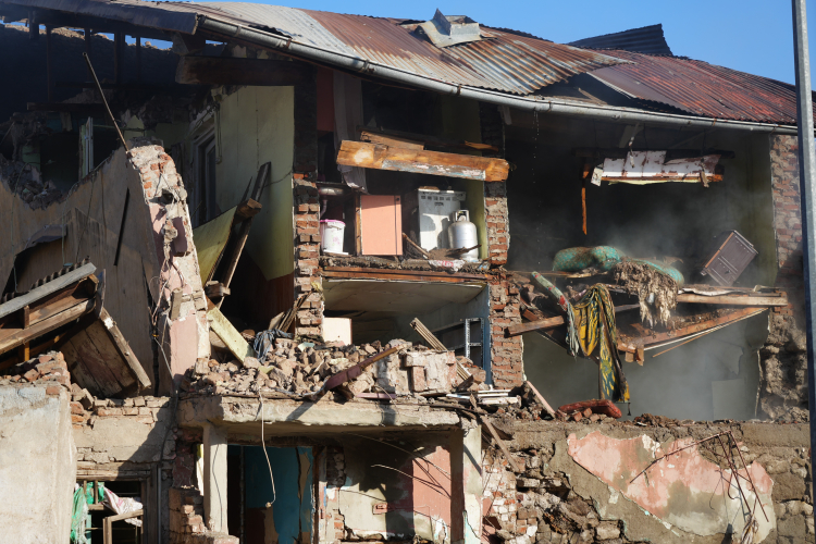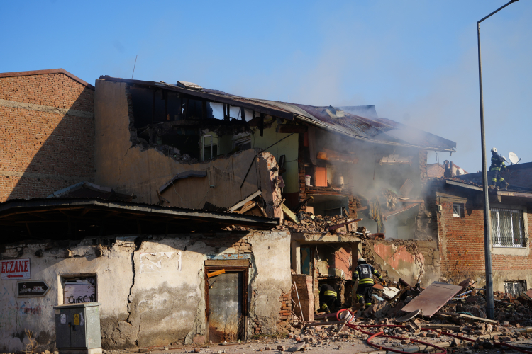 Erzurum'da doğalgaz patlaması sonucu 2 ev yıkıldı.