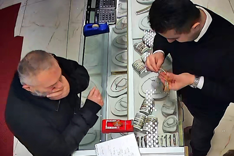"45-50 yaşlarında bir beyefendi mağazaya altın bozdurmak için. Yani bozdurmak için değil de altın değiştirmek için geldi. Biz de altınları hesapladıktan sonra kontrol etmek amaçlı kestik. Altın olmadığını anladık. Ondan sonra polis memurlarına, polis arkadaşlara haber verdik. Onlar da gelip gerekli işlemleri yaptılar. Bileziğin sertliğinden, renginden. Patent aslında çok kaliteli yapılmıştı. Yani yeni başlayan, bu işe yeni başlayan bir arkadaş bu bilezikleri gerçekten altın zannedip alabilirdi. Ama işte Allah yardımcı oldu herhalde o sırada, biz de bu şeye takılmamış olduk. Değeri yaklaşık 350 bin civarı. Bilezikleri verip 24 ayar altın almak istediğini söyledi aslında."