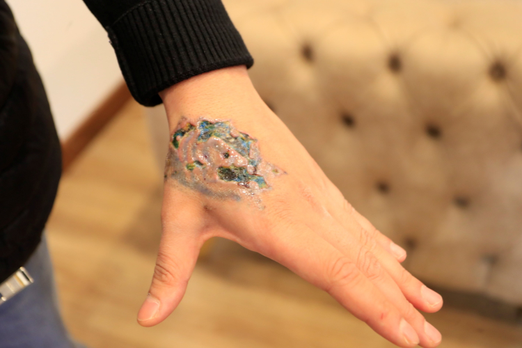 Bir güzellik merkezinde elindeki dövmeyi sildirmek isteyen Yasin Taş'ın sol elinde iddiaya göre hatalı uygulama nedeniyle ikinci derece yanık oluştu.