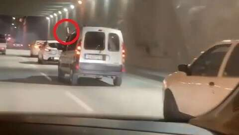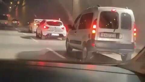 Tünele giren araçlardan bir anda havaya ateş açılmaya başladı. O anlar bir başka sürücü tarafından kaydedildi.