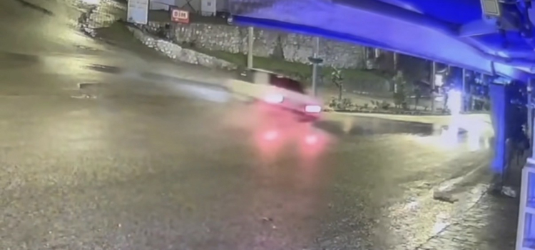 İlk kaza, Akçakoca Tabaş mekiinde meydana geldi. M.Ö. idaresindeki 54 PH 358 plakalı Tofaş marka otomobil yağmur sebebiyle kayganlaşan yolda sürücüsünün direksiyon hakimiyetini kaybetmesiyle refüjdeki direğe çarpıp savruldu. Kaza anı çevredeki güvenlik kamerasına anbean yansırken, kazada sürücü M.Ö. ile yanında yolcu olarak bulunan E.Y. yaralanarak hastaneye kaldırıldı.