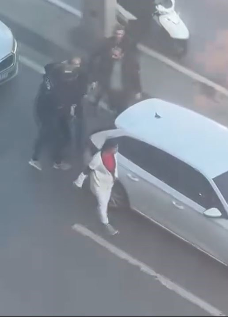 Olay, geçtiğimiz Cuma günü E-5 Karayolu Beylikdüzü mevkinde yaşandı. İddiaya göre trafikte tartışan sürücüler akan trafiğe aldırmadan araçlarından inerek tartışmaya başladı. Kısa sürede büyüyen tartışma kavgaya dönerken, taraflar yumruk yumruğa birbirine saldırdı. Kavga eden sürücüleri ayırmak isteyen hamile bir kadın ise kavganın ortasında kalarak fenalaştı. Yaşanan o anlar ise vatandaşın cep telefonu kamerasına yansıdı.